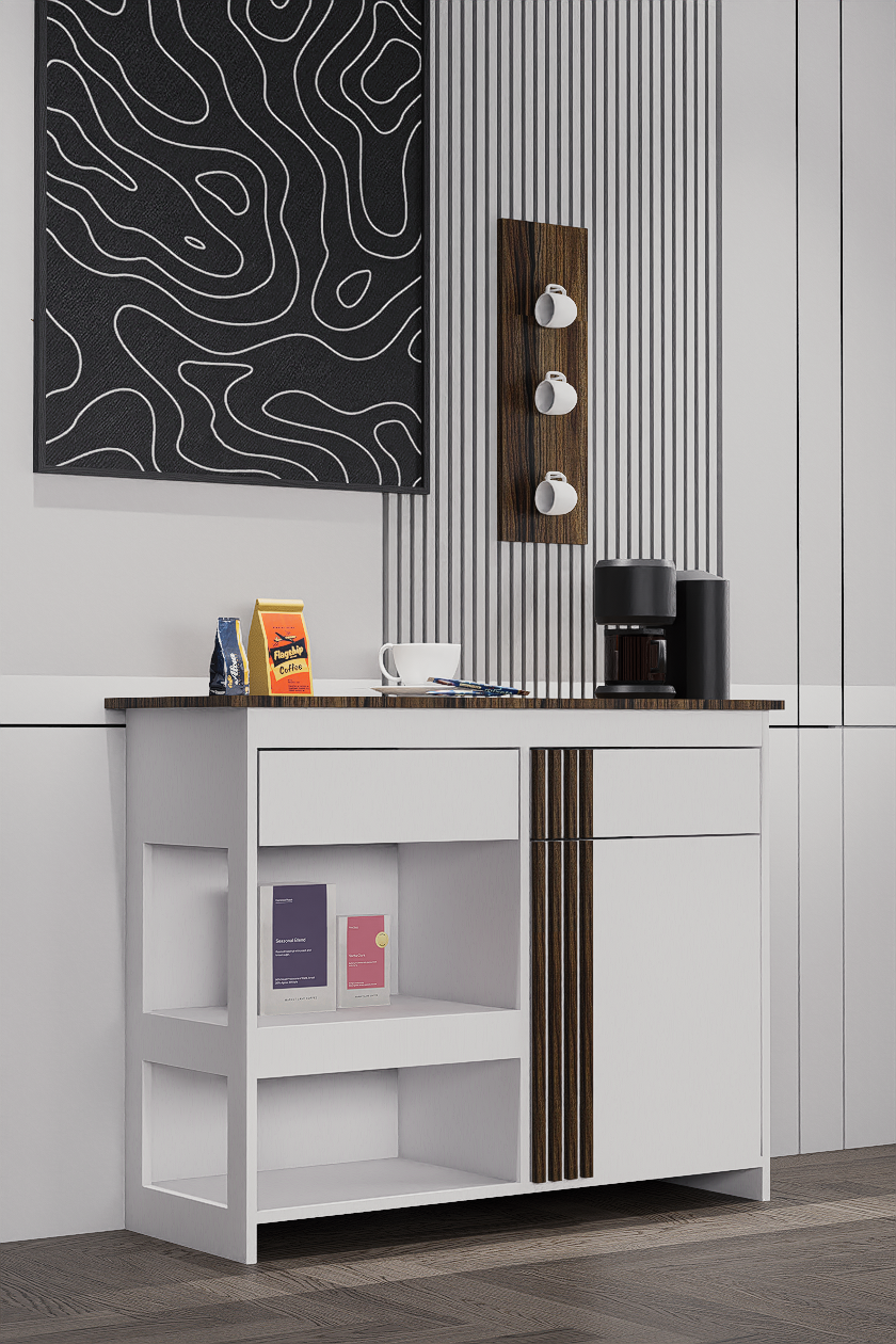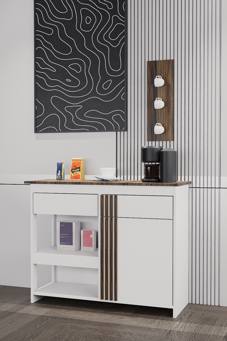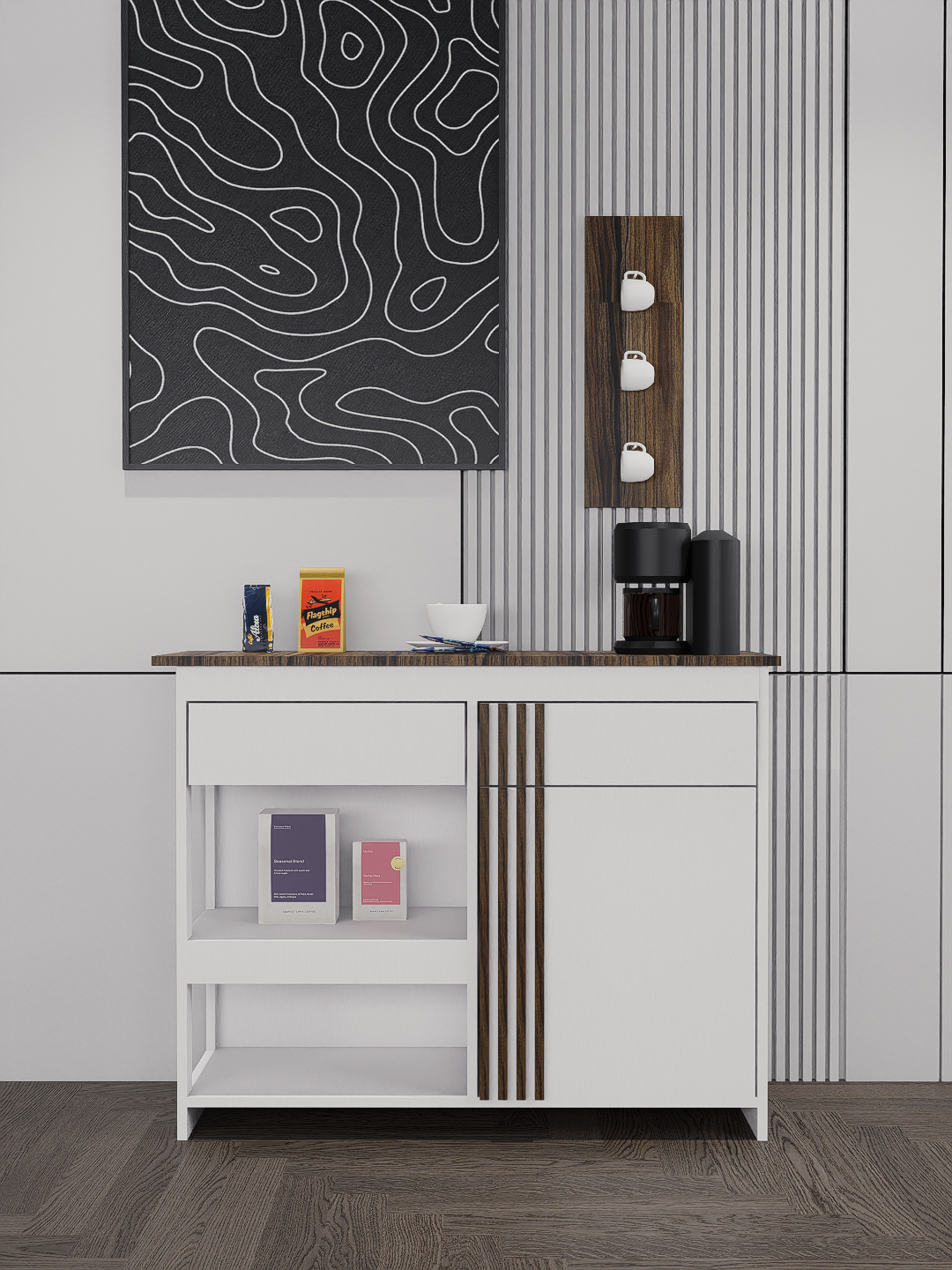 هل تحلم بتحويل ركن قهوتك في المنزل إلى مكان أنيق وعملي لا تمل منه أبدًا؟ مع كوفي كورنر خشبي ابيض من عالم الكوفي، ستضيف لمسة فخمة إلى مكانك المفضل. تصميم عصري يجمع بين البساطة والابتكار، ليمنحك كل ما تحتاجه لترتيب وتنظيم أدوات القهوة بطريقة أنيقة.