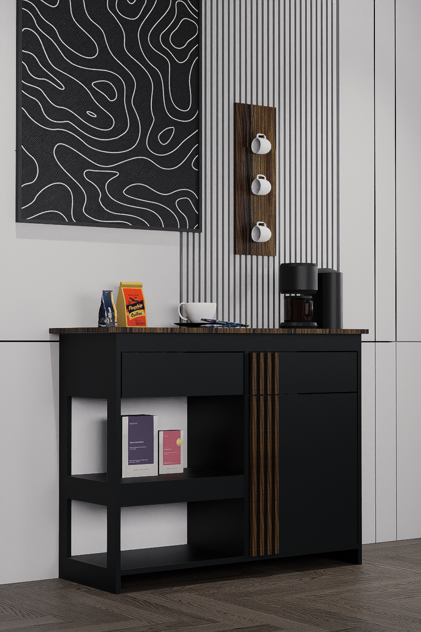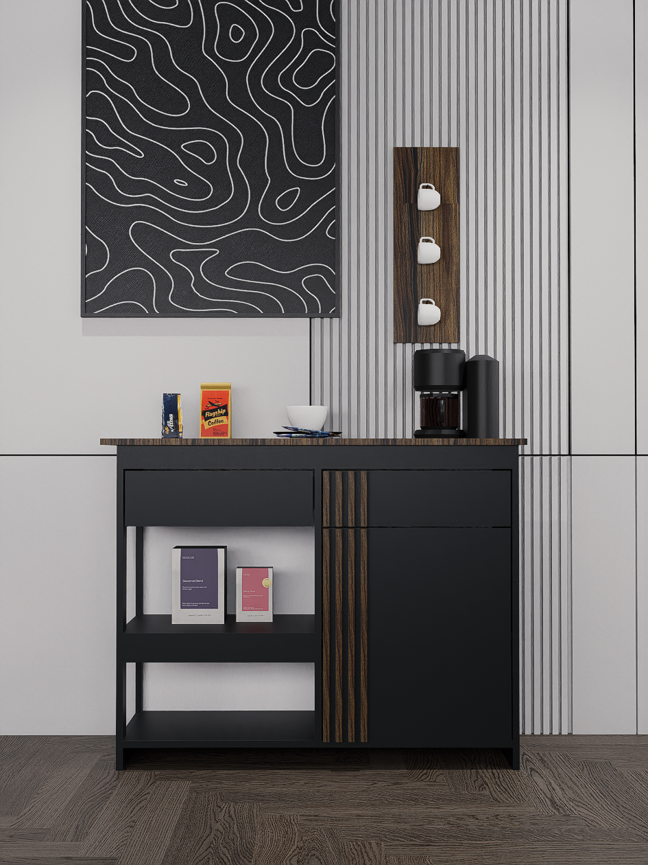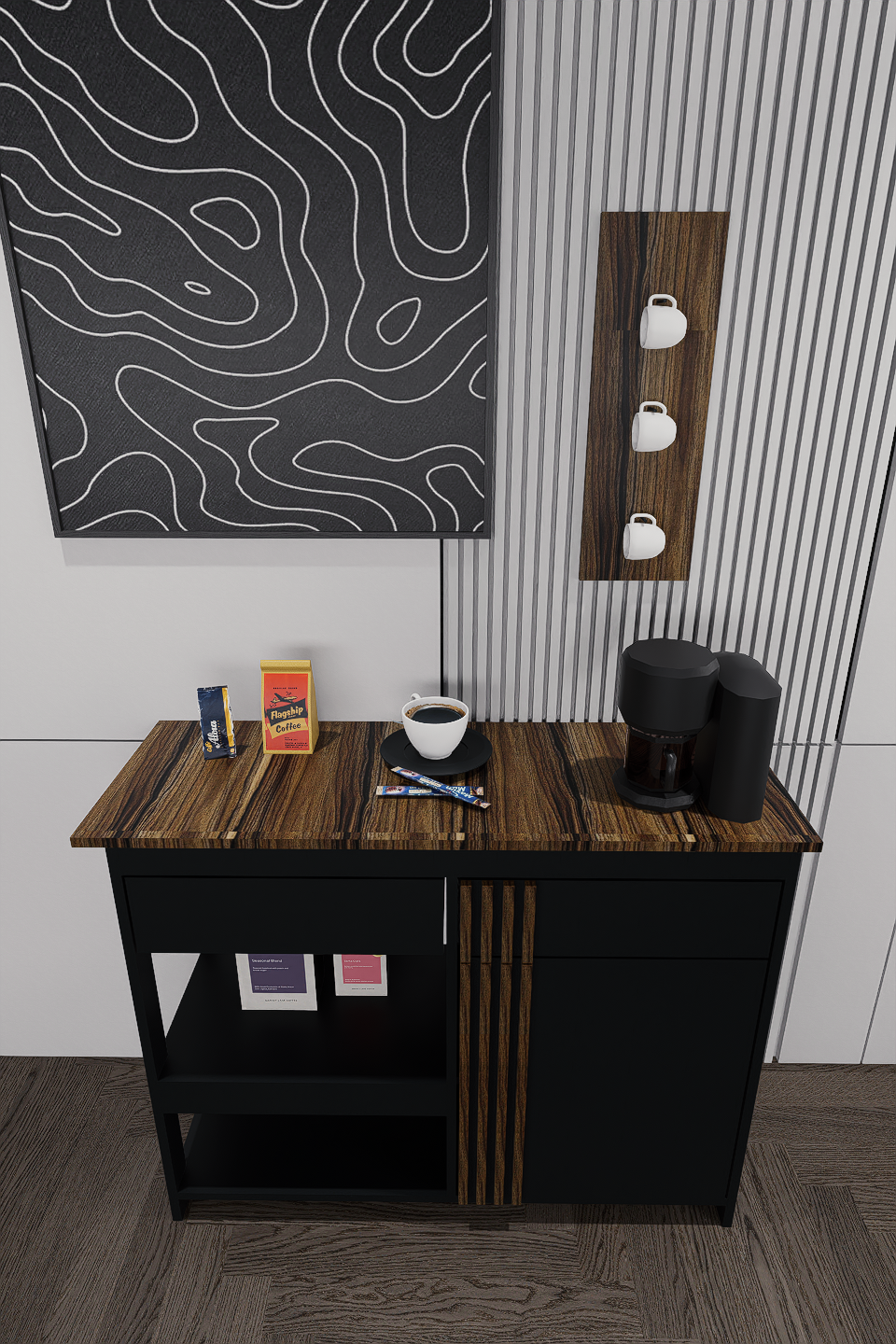 - يضم رفًا جداريًا لترتيب معدات القهوة بشكل يسهل الوصول إليها ويجعل عملية تحضير القهوة أكثر سهولة.
