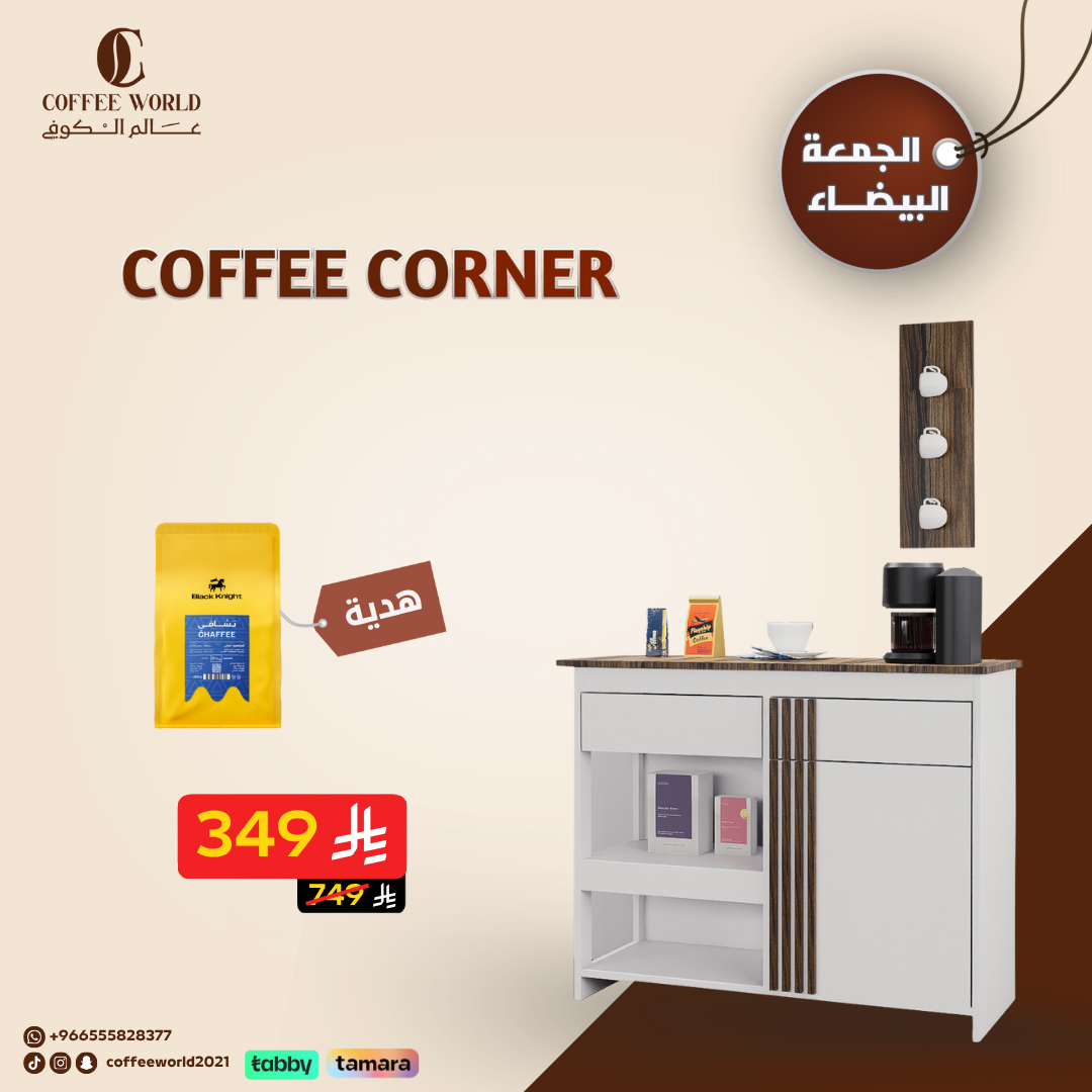- يشمل المنتج الركن وملحقاته الهيكلية فقط ولا يتضمن معدات أو أدوات القهوة.