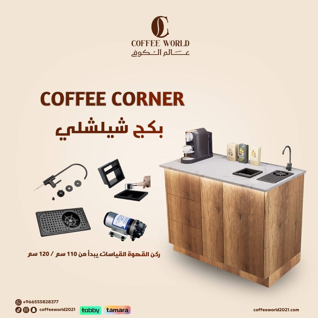 بكج ركن القهوة شامل الاضاءة و الحنفية الرينزر و السلة و مضخة ماء.