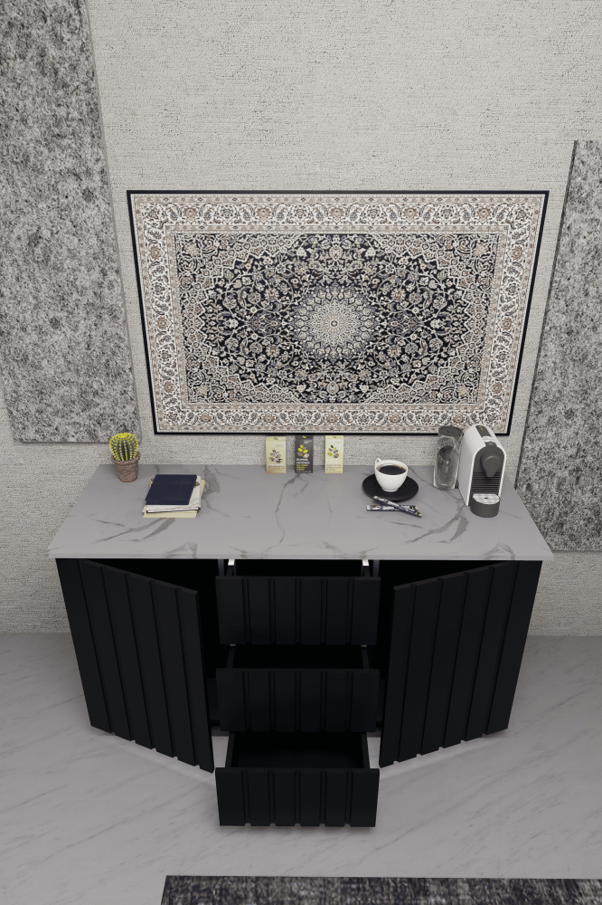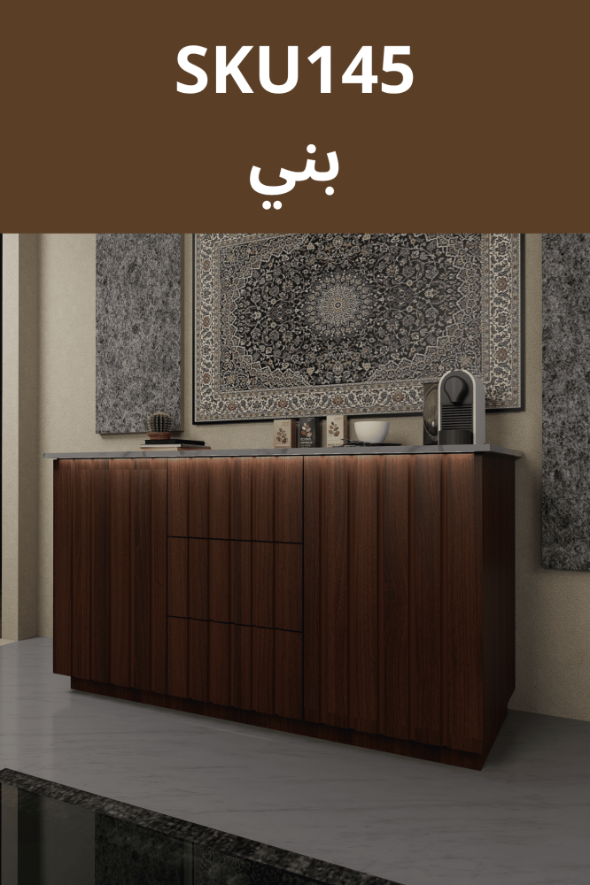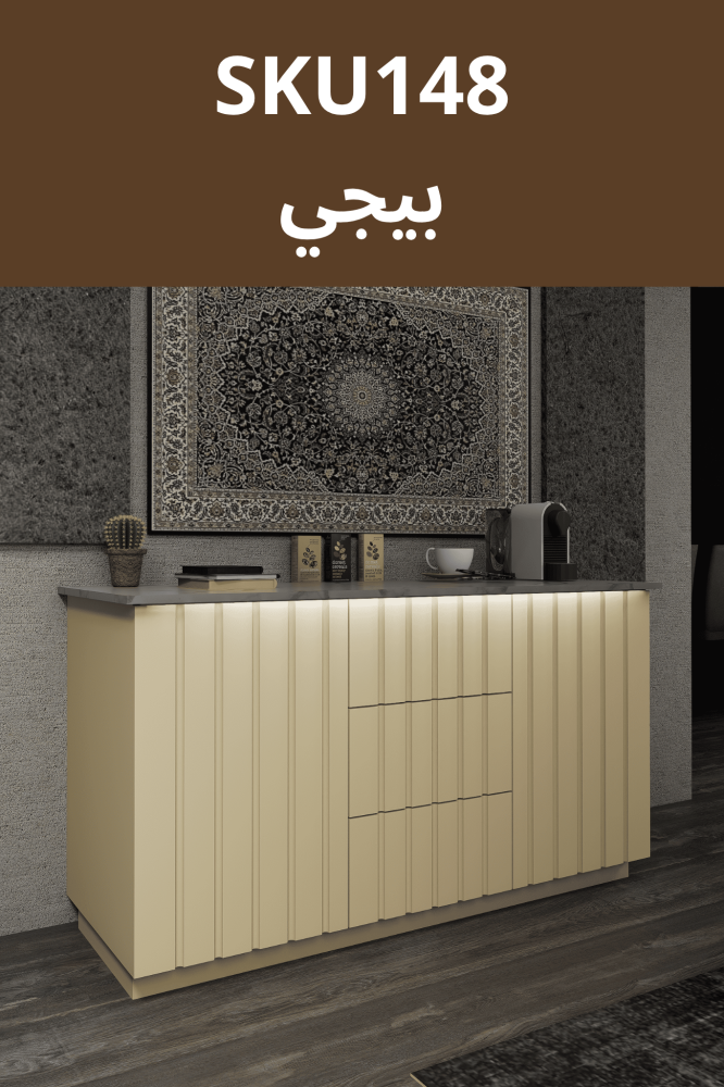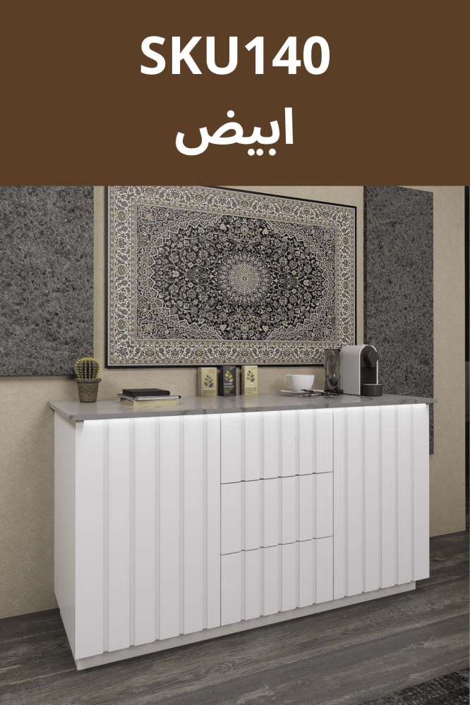- التصميم: أدراج مغلقة ورف علوي للتخزين أو عرض الديكور.